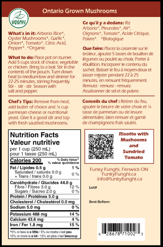 Support local and try this delicious and mouthwatering mushroom risotto with sundried tomato. Just add stock, allow to simmer and enjoy!