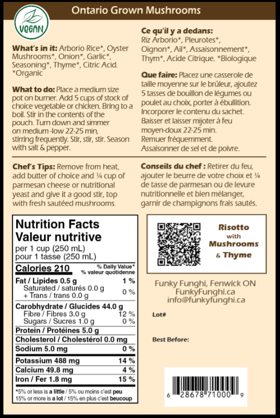 Support local and try this delicious and mouthwatering mushroom risotto with Thyme. Just add stock, allow to simmer and enjoy!